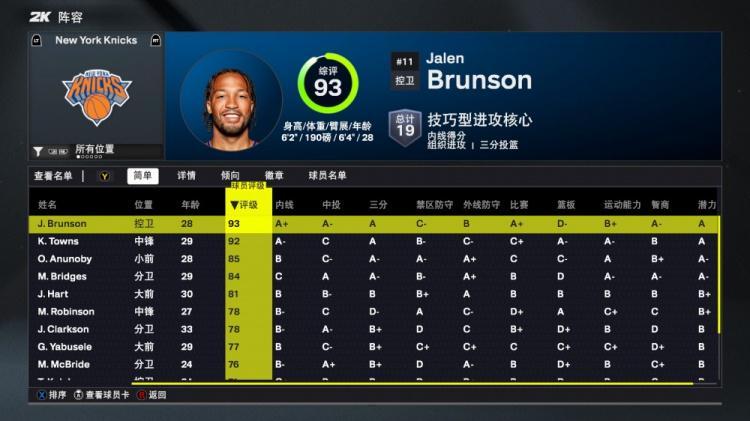 直播吧8月30日讯 今日NBA 2K26正式发布,尼克斯队球员能力值如下: