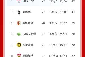 还剩6轮有悬念吗?德甲积分榜:拜仁先赛领先勒沃库森9分