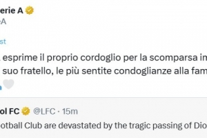 意甲官推发文写道:“意甲联赛对若塔及其兄弟的突然离世表示哀悼,并向其家人和利物浦俱乐部致以最深切的慰问。”