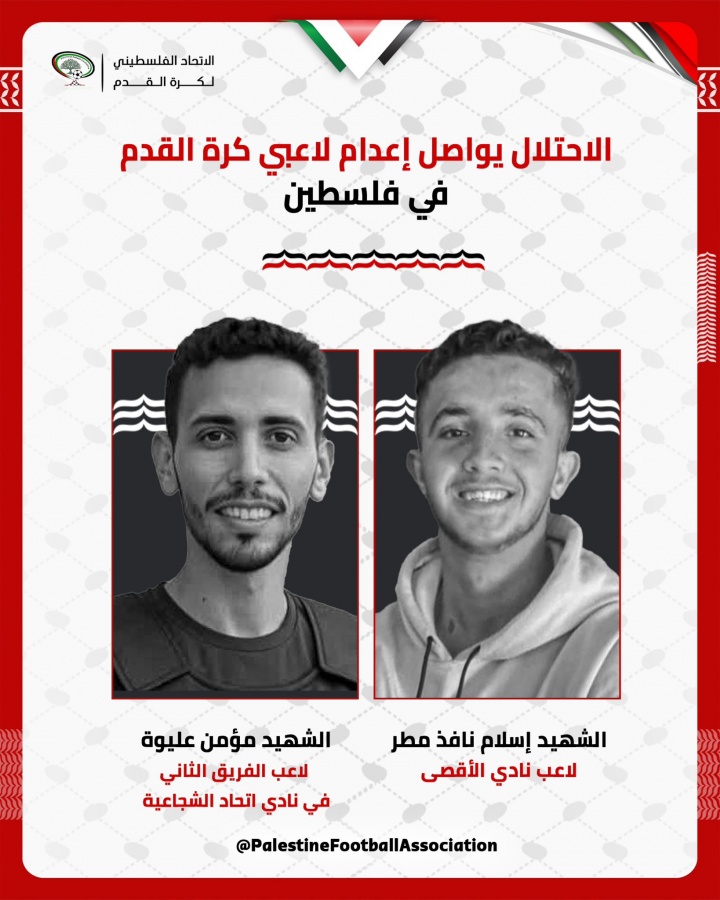08月15日讯 巴勒斯坦足协发布讣告,两名足球运动员在以色列袭击中不幸遇难。